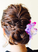 | 両サイドはプクプク編み込みで少し甘さを出して大人っぽくシニオンにしてみました。結婚式や二次会、夏祭りにもOK♪ |